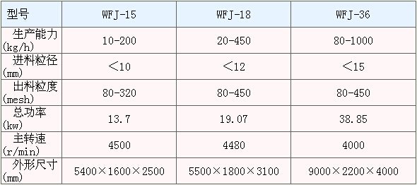 WFJ 系列微粉碎机技术参数