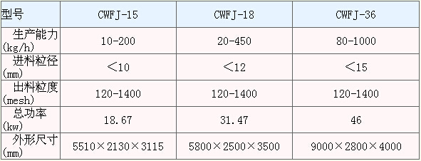 CWFJ 系列超微粉碎机技术参数